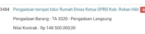 Dan seperti diketahui, pengadaan tempat tidur dan perabotan rumah dinas tidak hanya Rumdis ketua DPRD Rohil semata. Pada APBD perubahan 2020 lalu, terpantau di laman LPSE juga dianggarkan untuk Rumdis Bupati Dan (Mess Pemda) dan angkanya juga lebih mahal dibanding Rumdis Ketua DPRD Rohil. (rilis/iloeng)