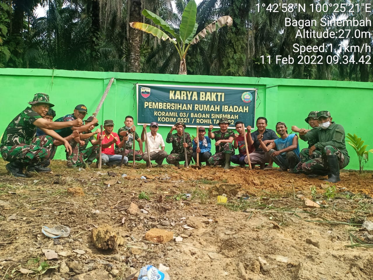 Inforohil.com, Basira – Bersama warga masyarakat, sebanyak 10 orang Babinsa Koramil 03/Bgs Kodim 0321/Rohil melaksanakan Karya Bakti dengan sasaran membersihkan rumah ibadah di wilayah Koramil 03/Bgs Tahun 2022.