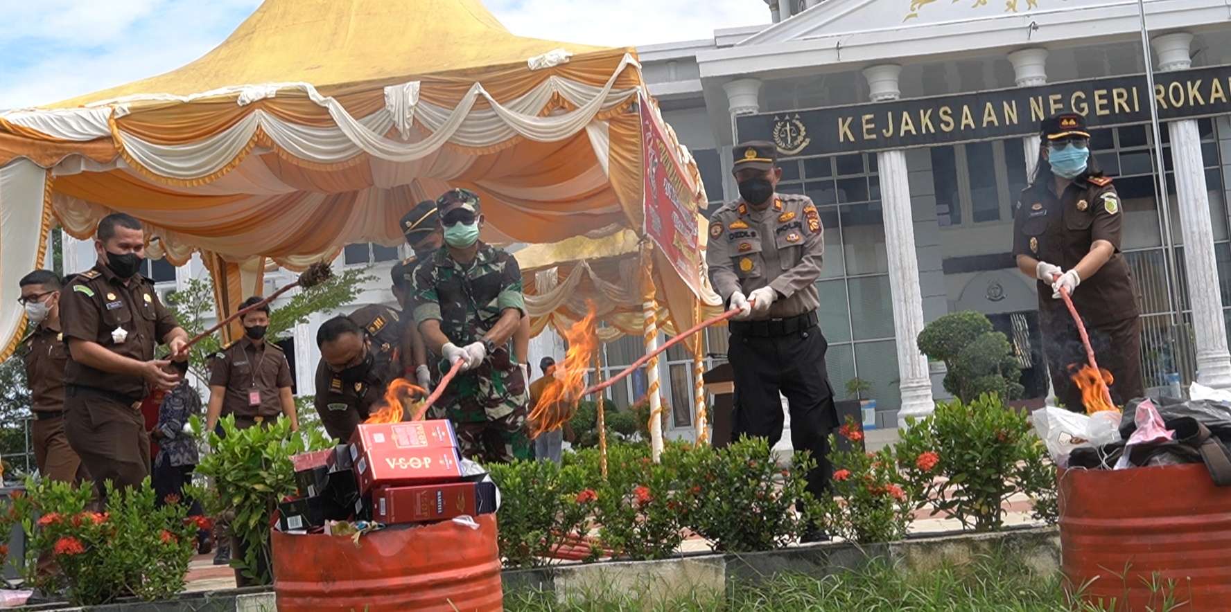 Kajari Rohil Yuliarni Appy SH MH didampingi Kasi BB Maiman Limbong, Kasi Pidum Yonki Arvius, Kasi Intel Hasbullah SH serta Kasis Pidsus Hardianto kepada awak media mengatakan bahwa, pemusnahan barang bukti yang dilakukan berdasarkan putusan Pengadilan Negeri Rohil yang telah memiliki kekuatan hukum tetap (Tahun 2021 hingga 2022) Jo Surat Perintah Kepala Kejaksaan Negeri Rokan Hilir Nomor : Print- 08/L.4.20/Kpa.5/02/2022 tanggal 14 Februari 2022.