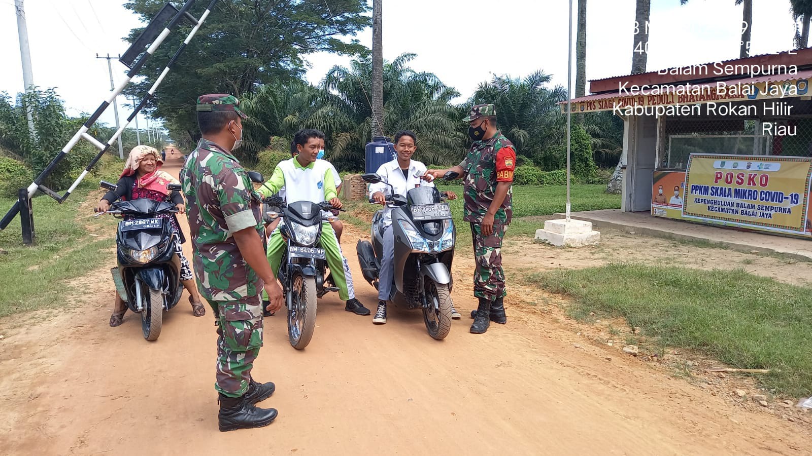 Dalam kesempatannya, para personil Koramil 03/Bgs itu mengawasi dan memeriksa protokol kesehatan terhadap warga masyarakat yang melintas didepan posko.