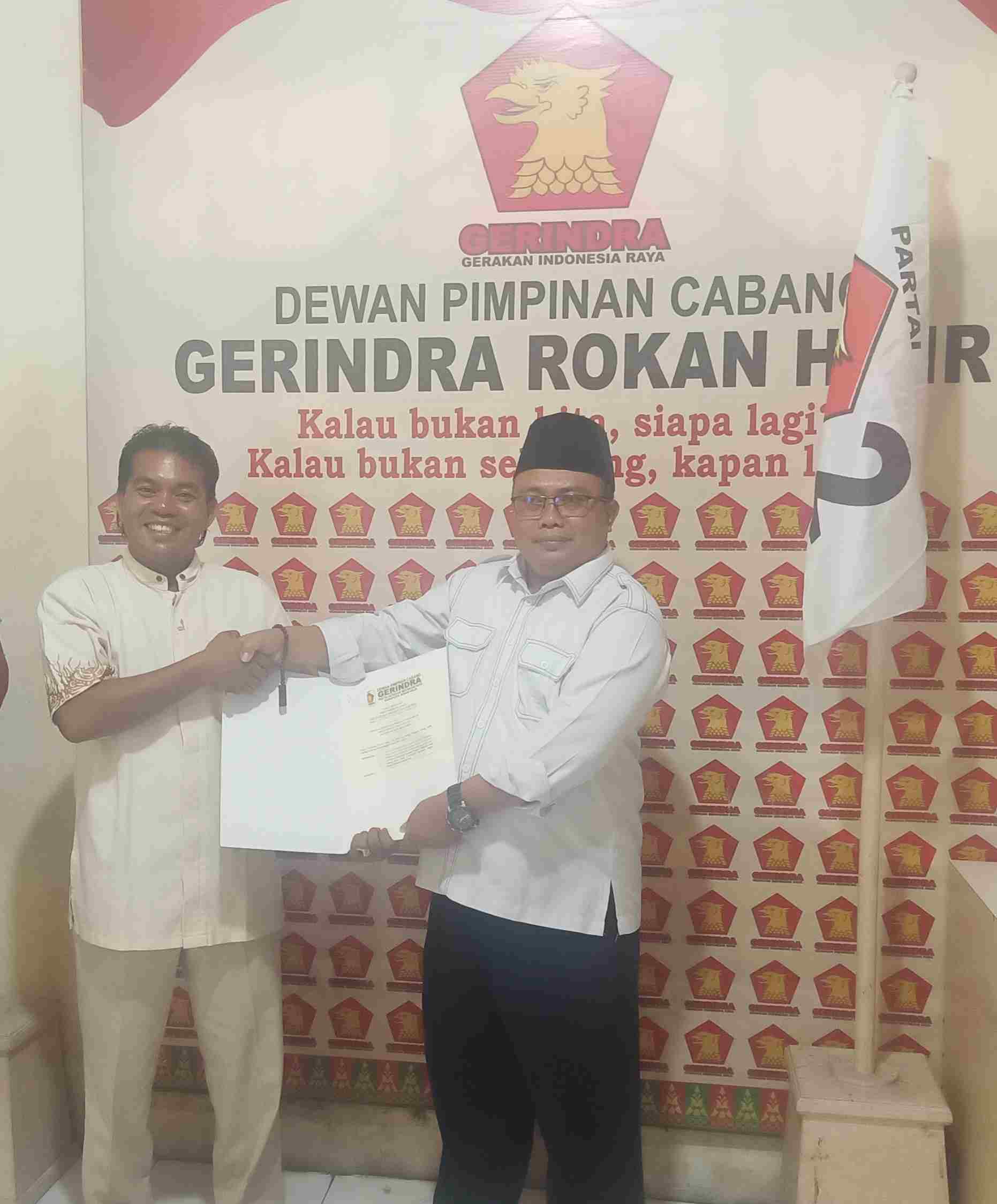 Sesuai SK yang dikeluarkan oleh Partai Gerindra Rohil Kepengurusan ( PAC ) Partai Gerindra Kecamatan Bangko Pusako Terhitung Dari tgl 05 Januari 2022 dan seterunya. ( Sto )