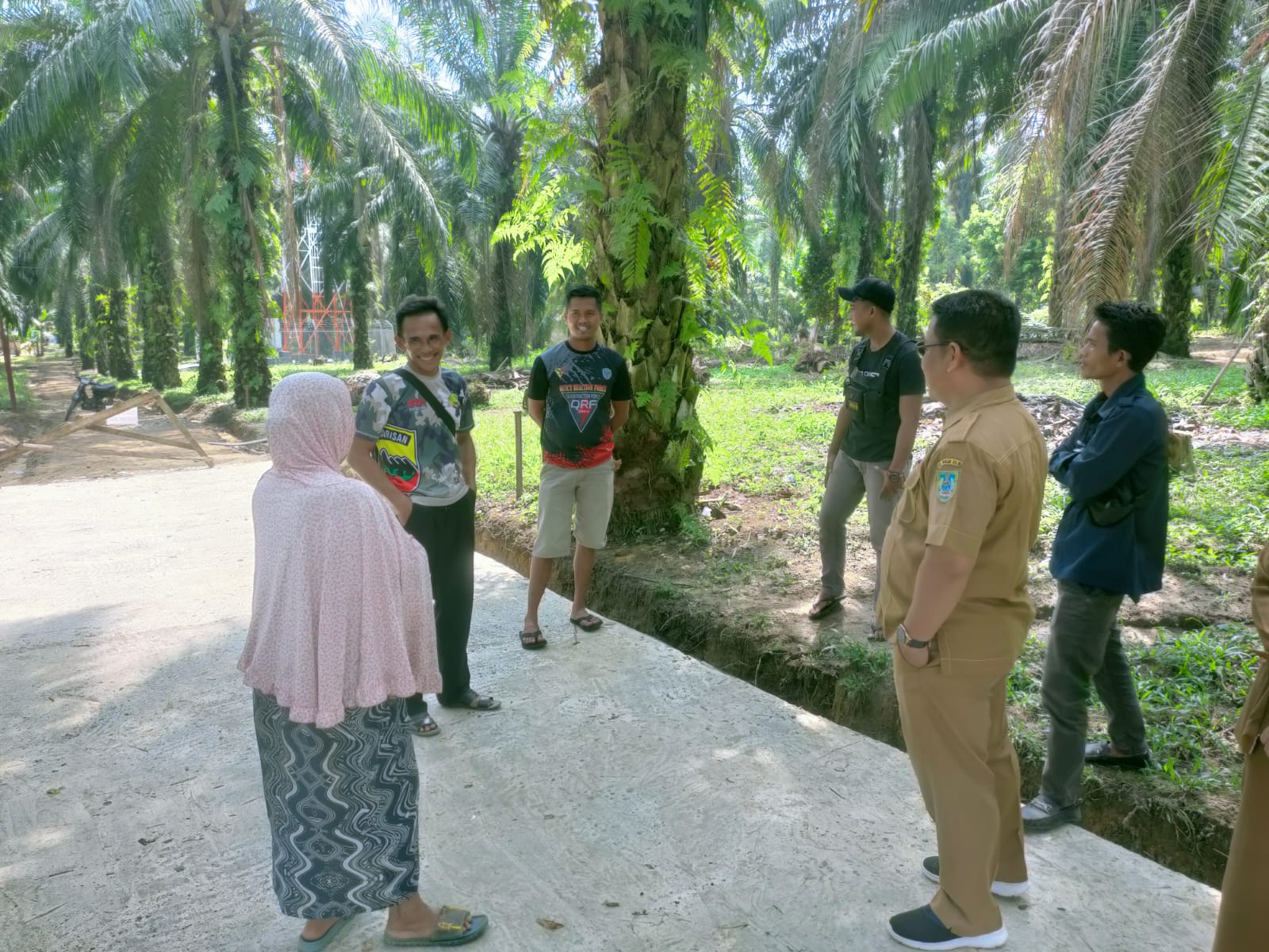 Mendengar pencapaian tersebut, Penghulu Bangko Lestari Agus Mukhlis langsung datang meninjau ke lokasi pembangunan semenisasi yang dikerjakan oleh personel Satgas TMMD.
